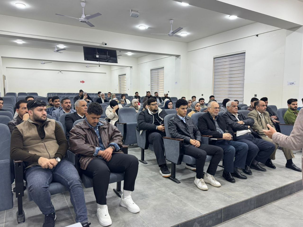 وتضمّن اللقاء كلمة ترحيبية للسيد عميد الكلية أكدت على أهمية المرحلة الجامعية ودور الدراسة الهندسية في بناء القدرات العلمية والفكرية للطلبة، وتشجيعهم على الالتزام الأكاديمي والسعي نحو التميّز والابتكار، بما يسهم في إعداد مهندسين تقنيين مؤهلين لخدمة المجتمع والمساهمة في التنمية. وكذلك تطرق السيد العميد الى طبيعة الدراسة في الكلية وأقسامها العلمية المختلفة والتي لها علاقة وثيقة بسوق العمل حيث تم استحداث هذه الاقسام بناءا على دراسة حاجات سوق العمل.