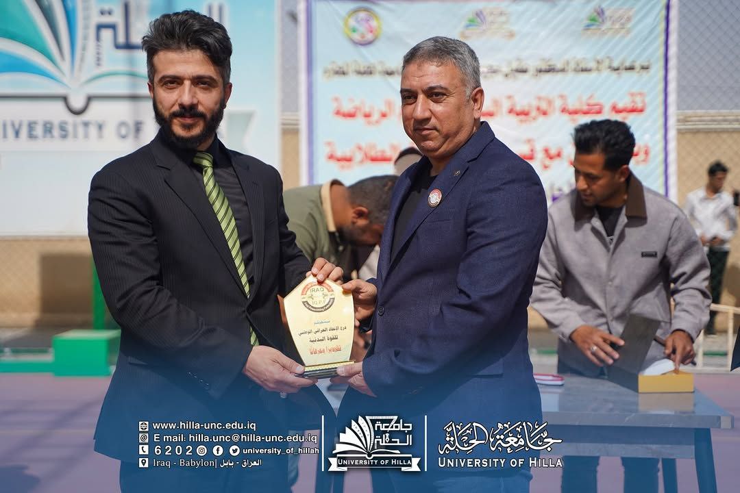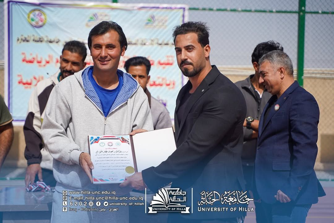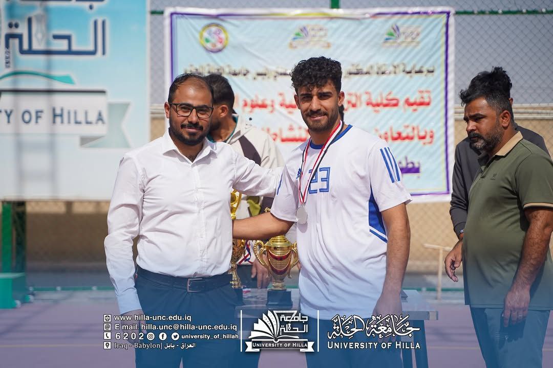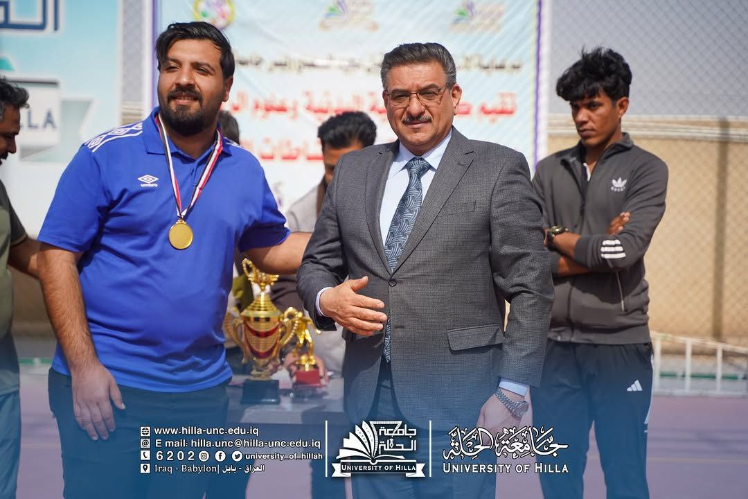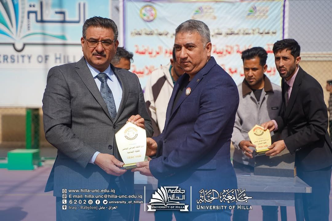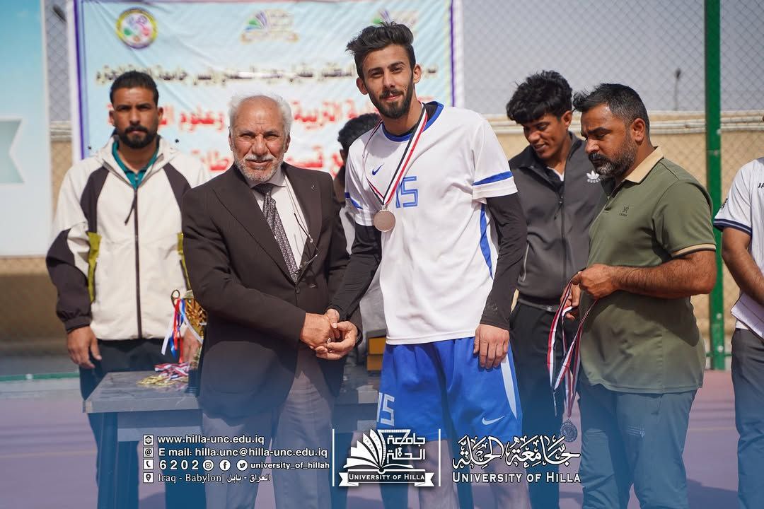اختتمام بطولة جامعة الحلة للكليات والاقسام العلمية بأجواء رياضية مميزة وحضور أكاديمي رفيع حيث توج فريق كلية التربية البدنية وعلوم الرياضة باللقب بعد فوزه المستحق على قسم الاجهزة الطبية بنتيجة (1-2) في مباراة نهائية مثيرة شهدت تفاعلا جماهيريا واسعا .